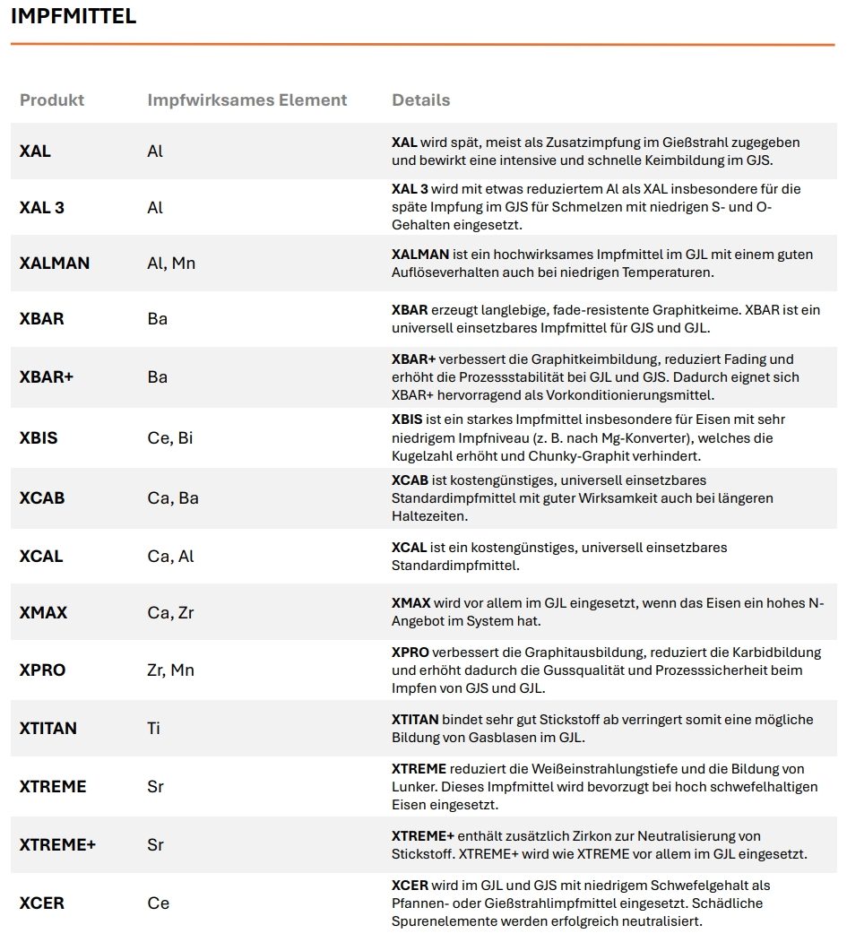Mit unseren eigenen hochwertigen Impfmitteln bieten wir maßgeschneiderte Lösungen, die stabile und reproduzierbare Gussresultate gewährleisten.